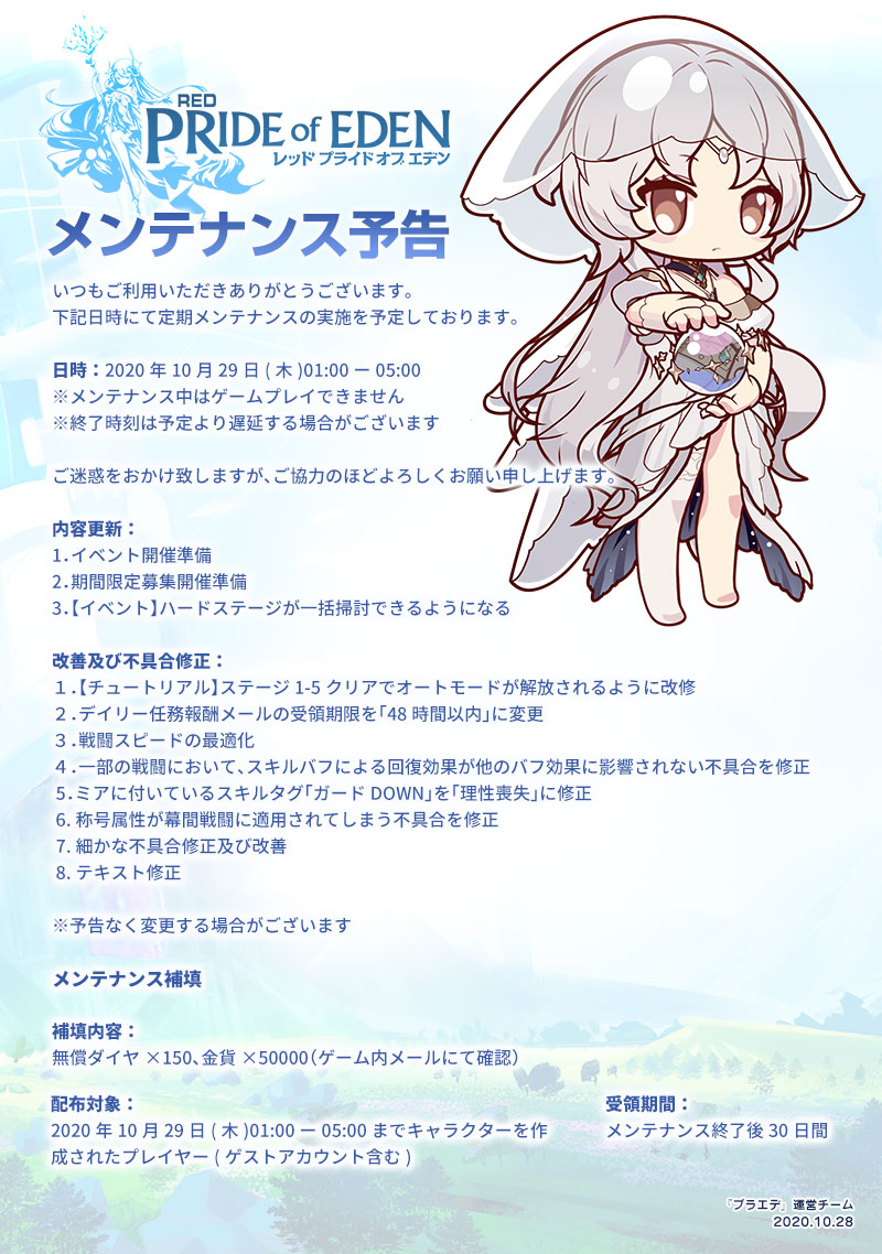 【プラエデ】10月29日(木)定期メンテナンス詳細